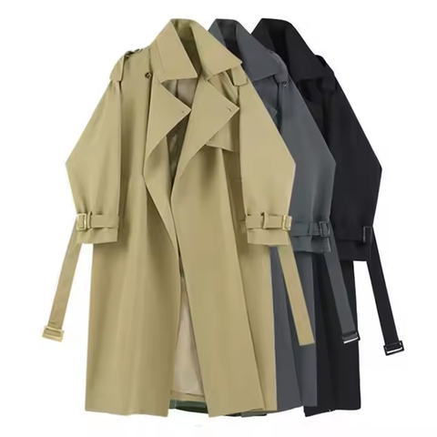 2024 temperamento alla moda Trench lungo da donna primavera e autunno cappotto largo alla moda giacca semplice con risvolto