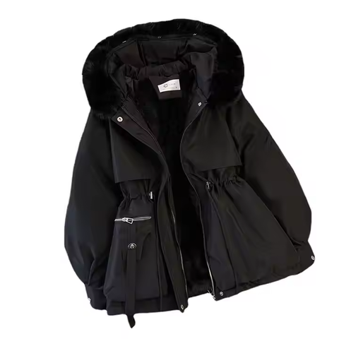 Boutique all'ingrosso 2024 inverno nuova versione coreana alla moda stile corto Cinching in vita con giacca da donna felpata