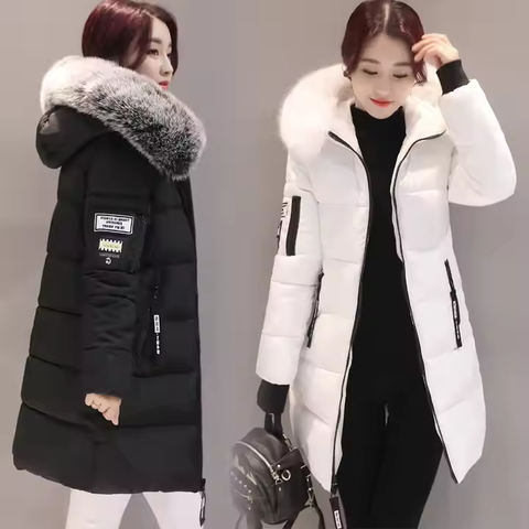 Cappotto invernale da donna parka di media lunghezza Hoodedt grande collo di pelliccia giacca termica all'ingrosso a buon mercato imbottita Jacke
